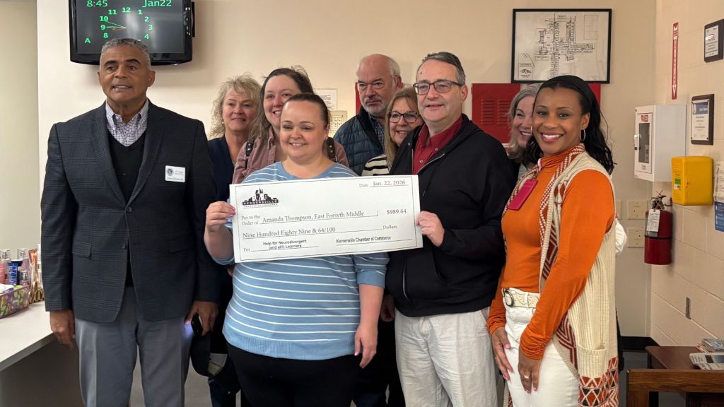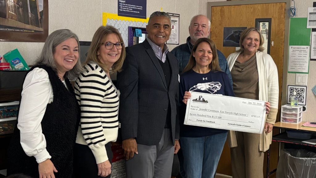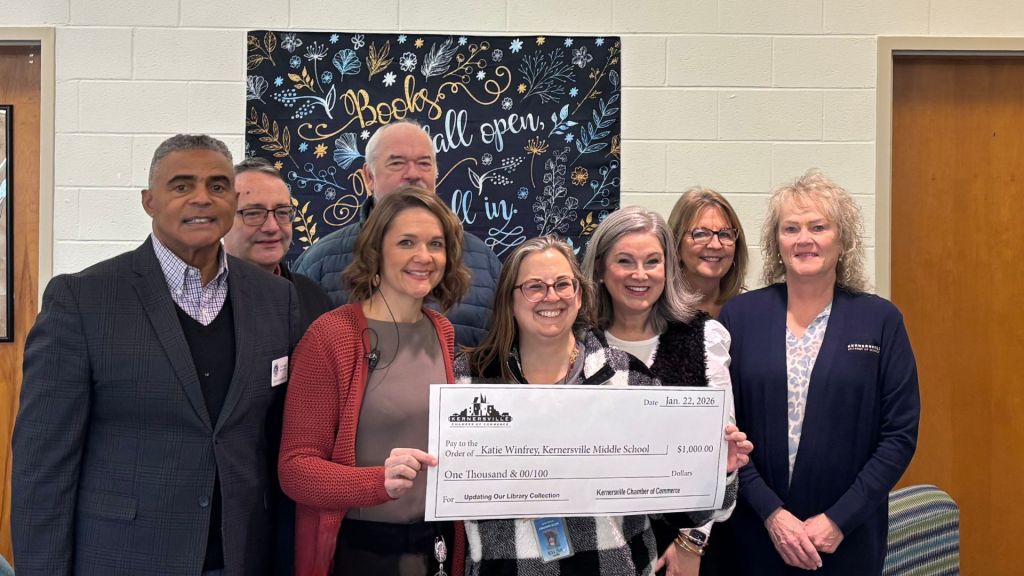 Local elected leaders joined representatives from the Kernersville Chamber of Commerce to deliver grant checks to a total of seven recipients at six area schools. The team, joined by school administrators, surprised the teachers in various locations, including during the middle of class as students looked on and cheered.