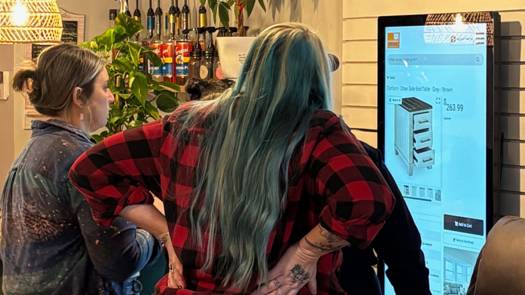 A key addition is an in-store ordering kiosk that allows customers to browse a broader furniture catalog beyond what is displayed on the floor.