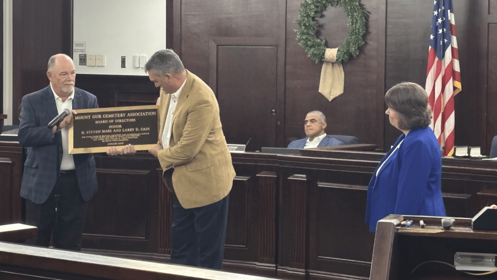 Leaders from the Mt. Gur Cemetery Association presented commemorative plaques recognizing the legacy of service that has preserved the site for generations. Established in 1894, when Kernersville was still part of Stokes County, Mt. Gur Cemetery has long stood as a local landmark and the final resting place for families across the community.