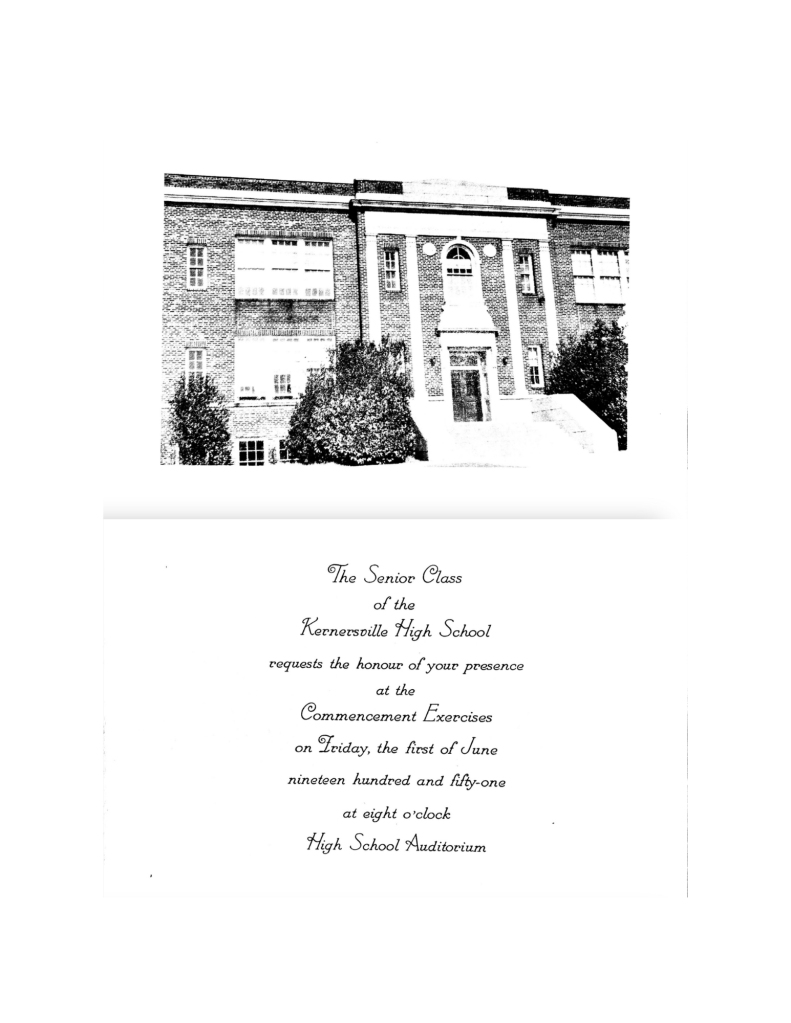 We’re working to preserve local history through a growing 1756 physical archive. We’ve already collected pieces tied to Kernersville Elementary’s years as the town’s high school, including a 1951 graduation invitation and a class photo from 1936.